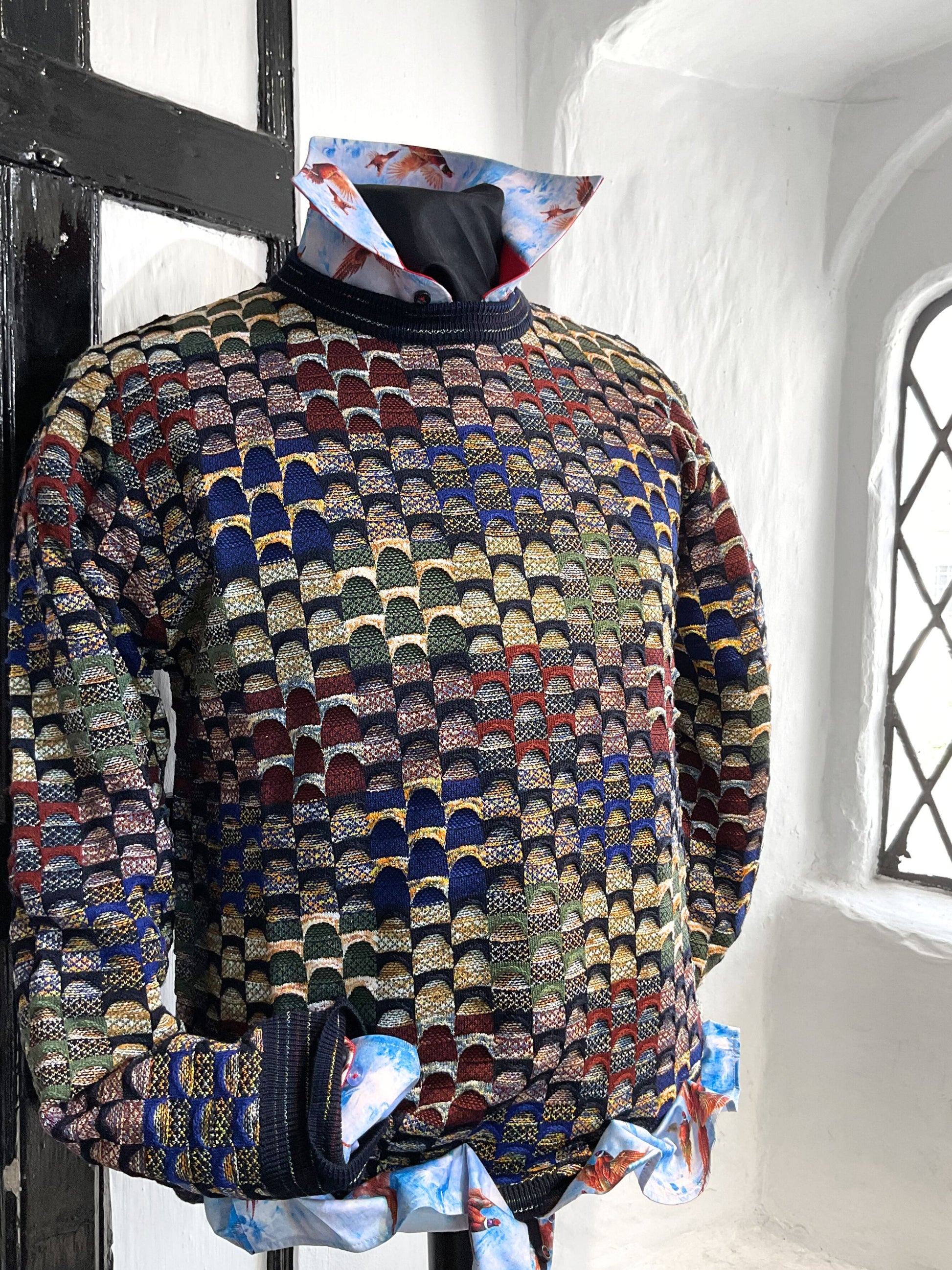 Make a statement without saying a word. The Montechiaro multicoloured jumper is a celebration of colour, texture, and refined Italian design. Whether you're dressing for a weekend brunch or adding flair to your weekday wardrobe, this jumper brings personality and polish in equal measure.