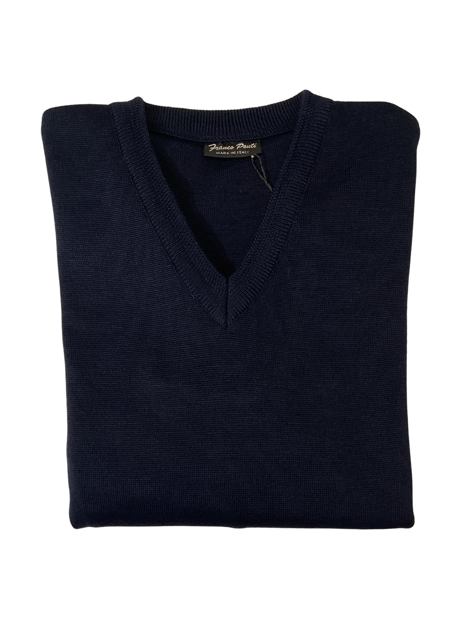 Understated elegance meets timeless versatility in this Franco Ponti fine knit jumper. Expertly crafted, this classic v neck jumper features a sleek silhouette with a refined ribbed neck, offering a smart-casual staple, ideal for layering or standalone wear. The lightweight, breathable fabric delivers all-day comfort, making it a go-to piece from desk to dinner.