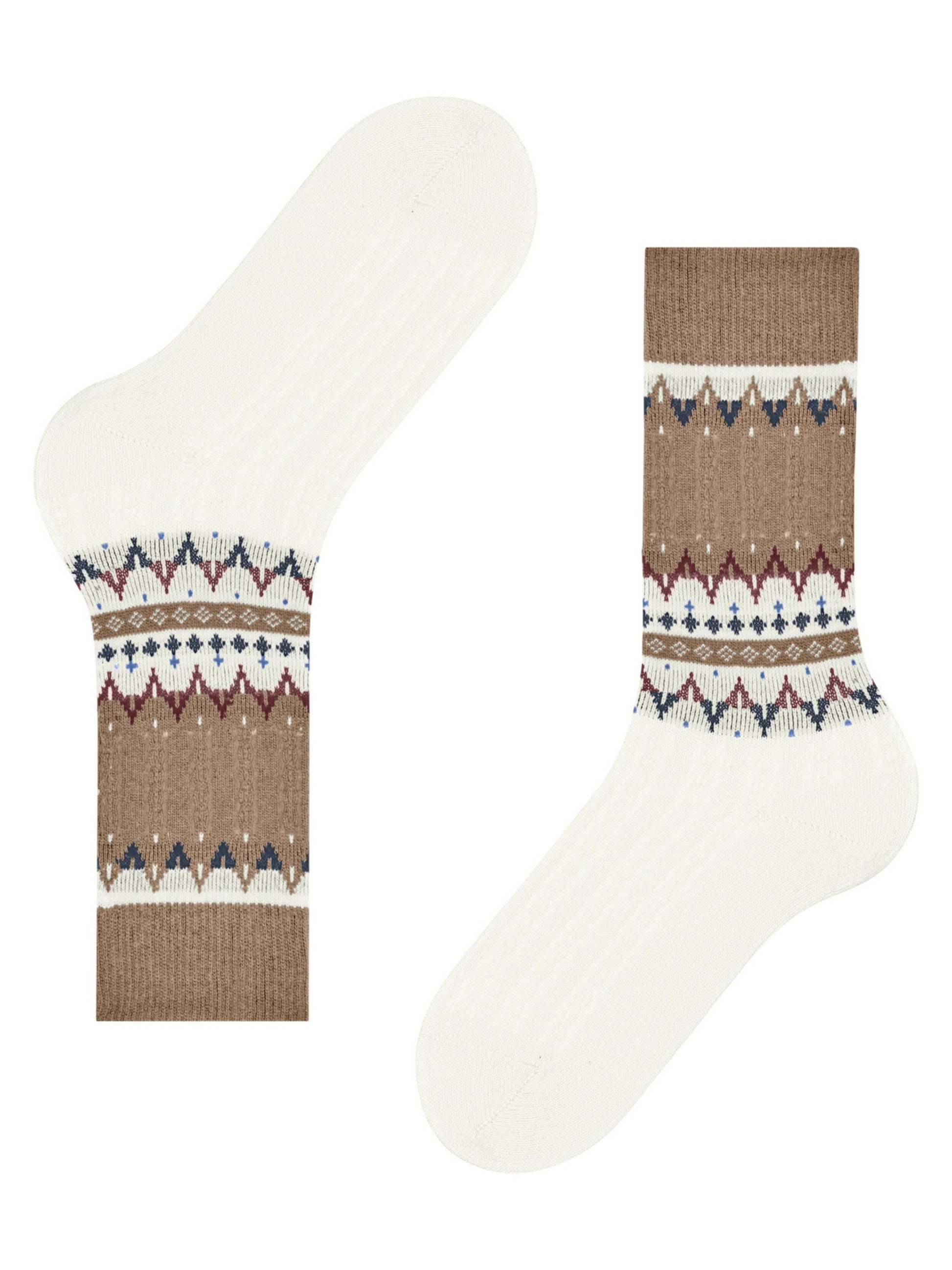 The modern reinterpreted Norwegian socks in a stylish, wintry look impress with harmonious, modern colour combinations, making them an absolute must-have for the winter season. The material composition of temperature-regulating wool and warming cashmere ensures pleasant wearing comfort and makes the socks ideal companions on cold days. The reinforced high-strain zones ensure optimal durability and round off the style together with the perfect FALKE fit.