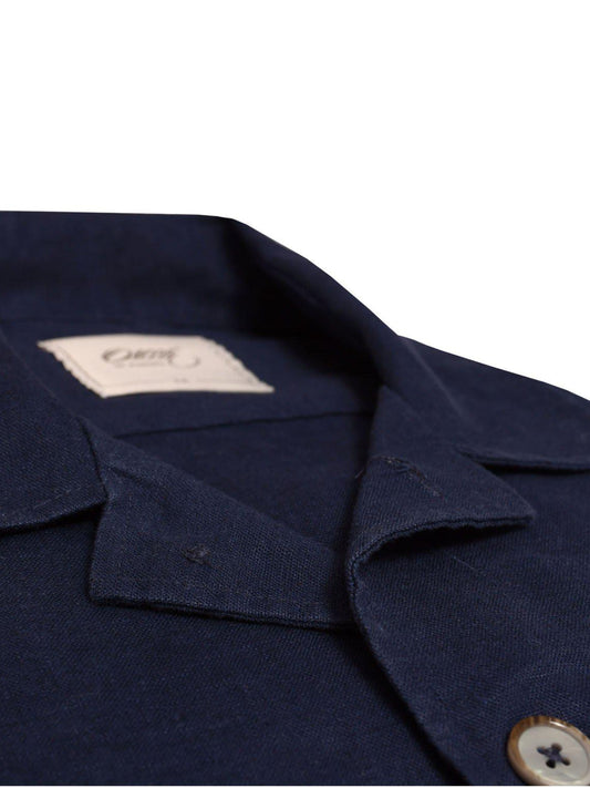 OSCAR INDIGO BLUE PURE LINEN LONG SLEEVE OVERSHIRT