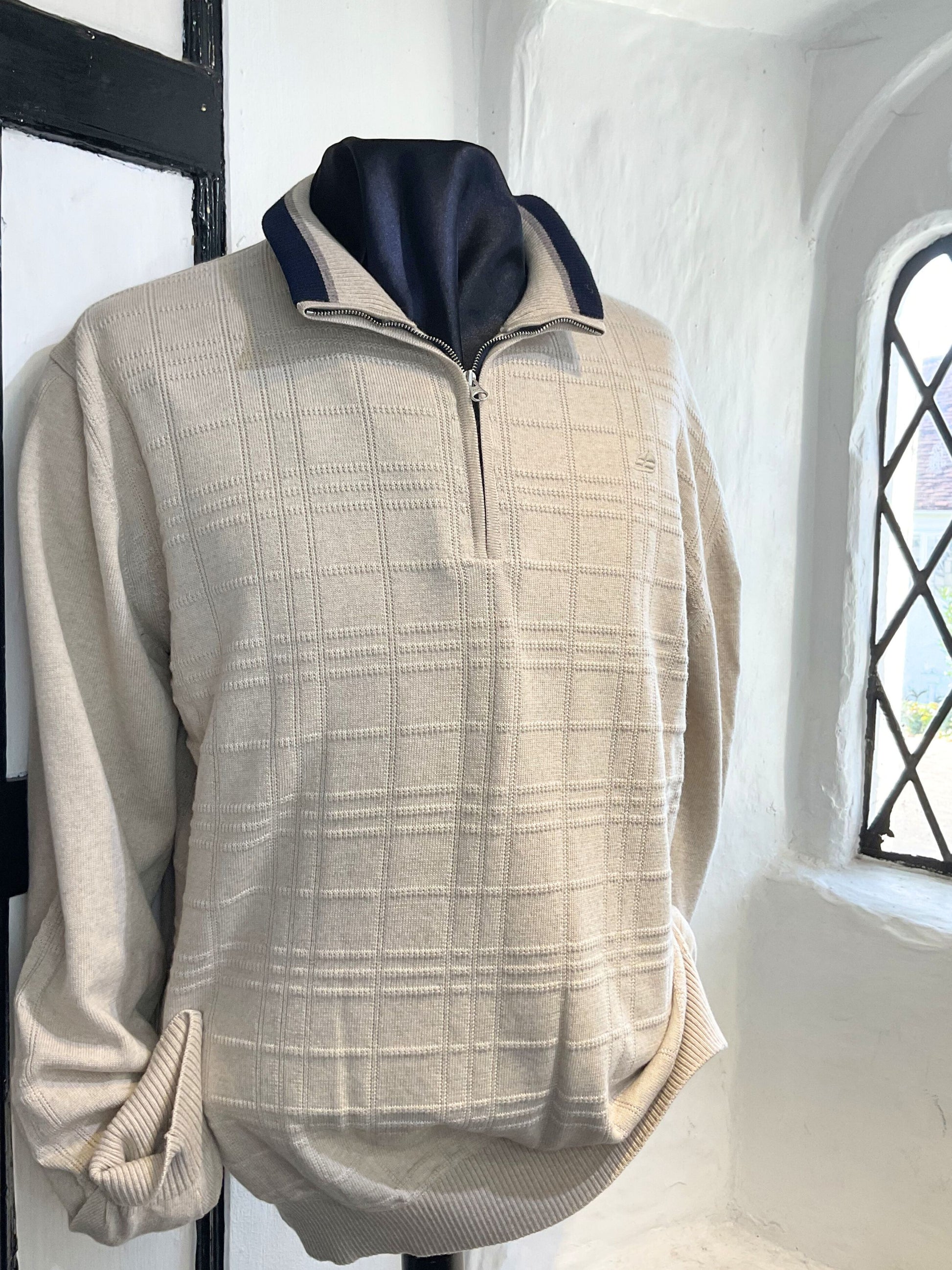 GREEN COAST BEIGE TEXTURED BUTTON NECK JUMPER