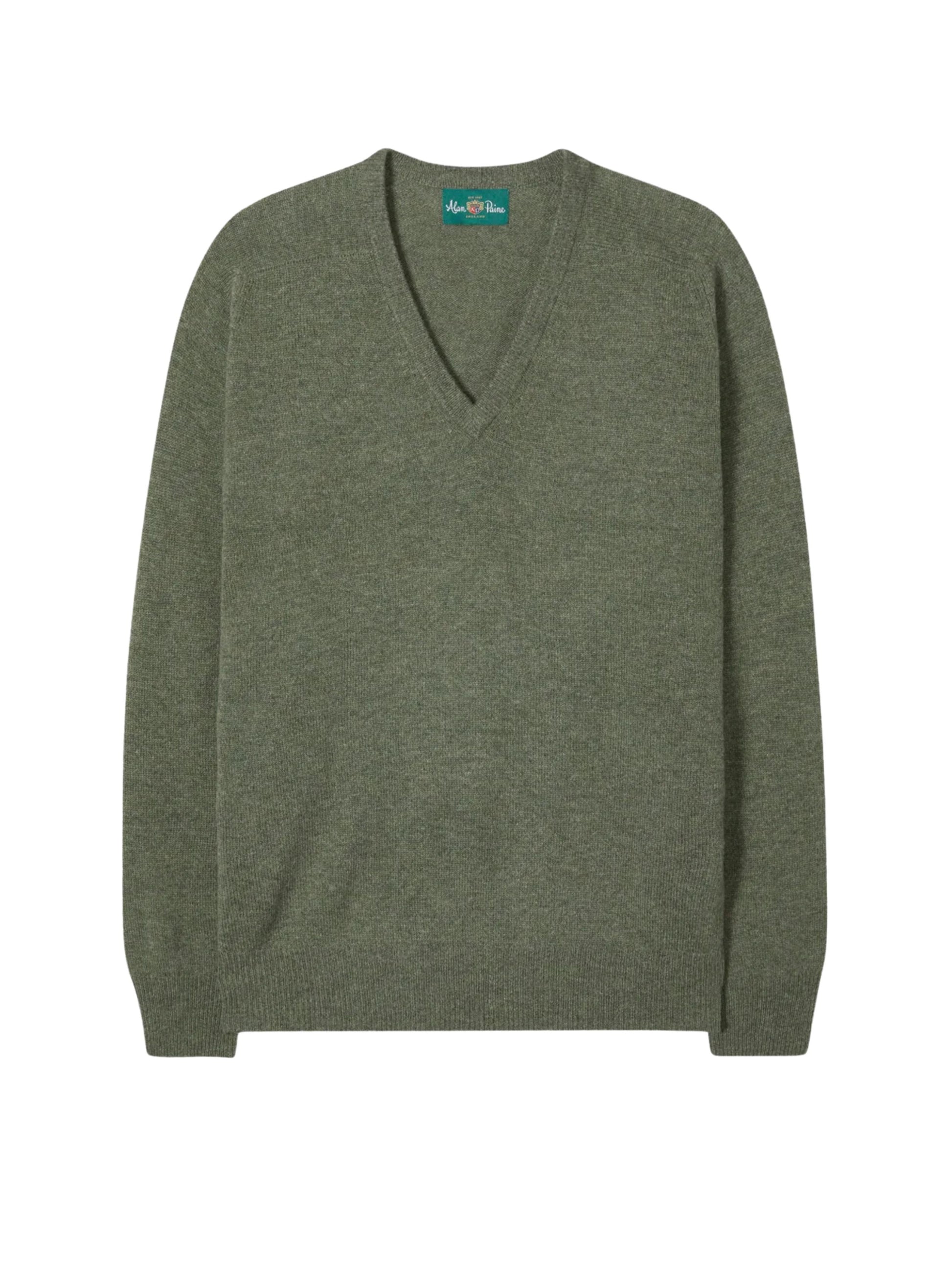 A true classic. This V-neck jumper in Landscape is crafted from pure super-soft lambswool and spun by Europe’s oldest spinner, Z. Hinchliffe, founded in Yorkshire, England 250 years ago. It has a full saddle shoulder shaping, generously cut across the waist, designed with a relaxed, more-traditional and comfortable fit.