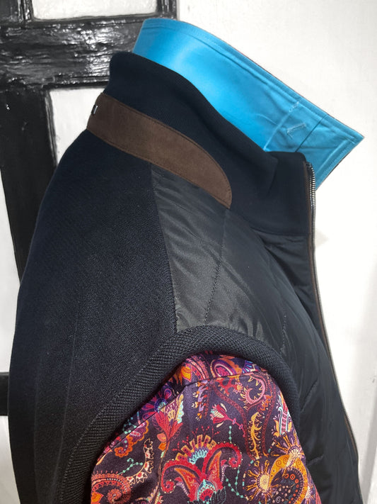 NAVY GILET WITH BROWN TRIM