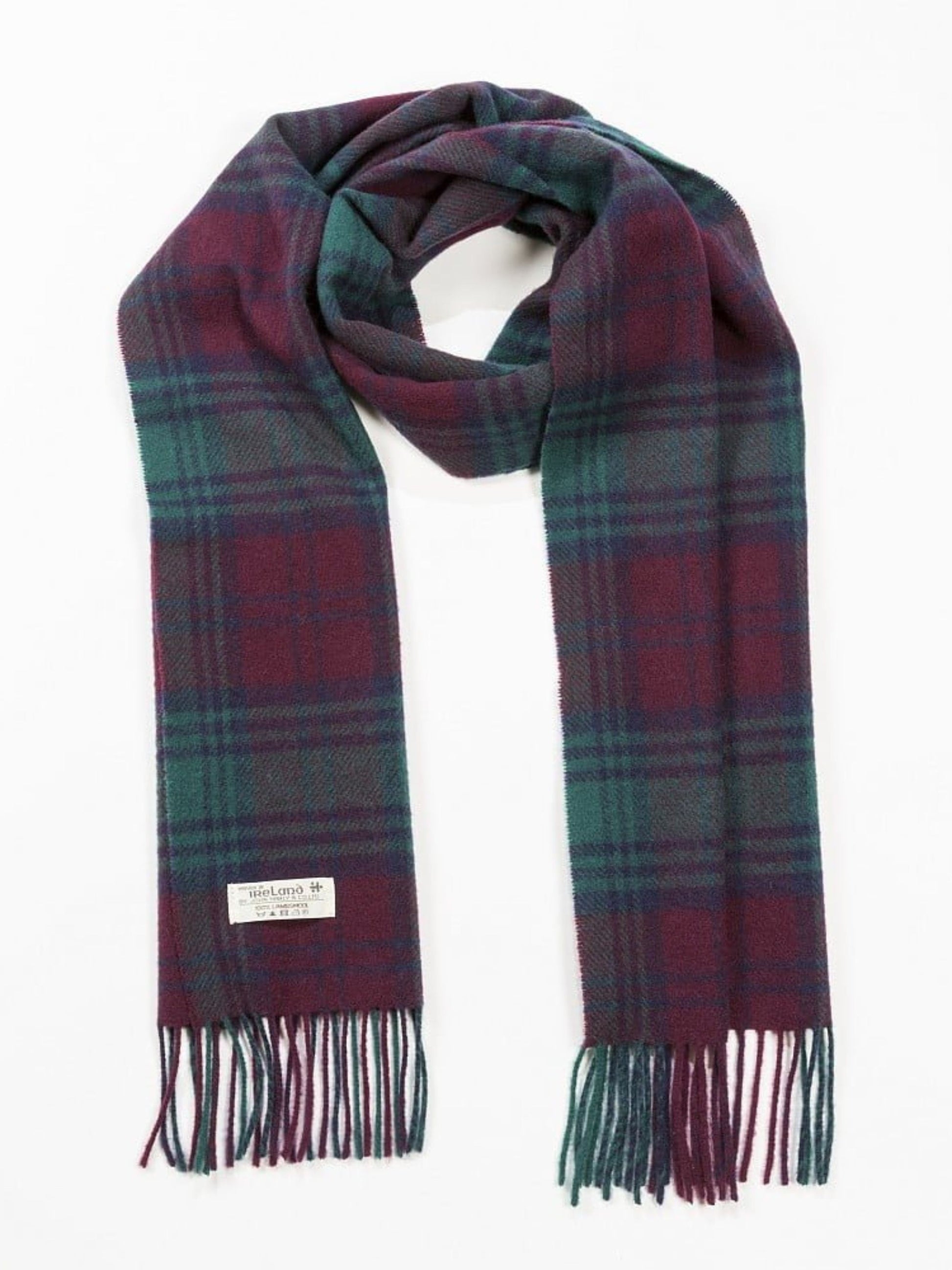 BURGUNDY AND GREEN LINDSAY TARTAN LAMBSWOOL SCARF