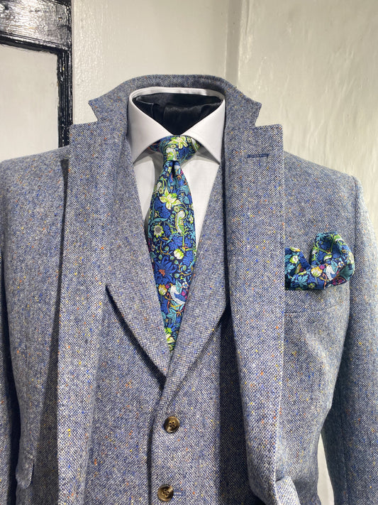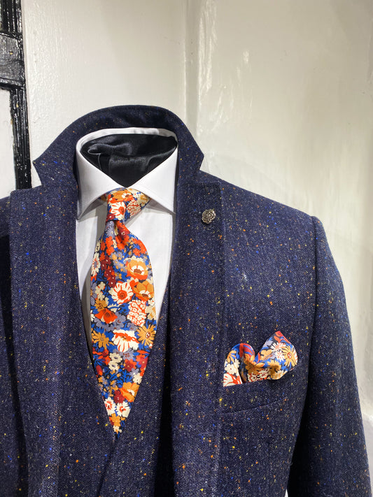 MILAN DARK BLUE HERRINGBONE SHETLAND PURE WOOL JACKET