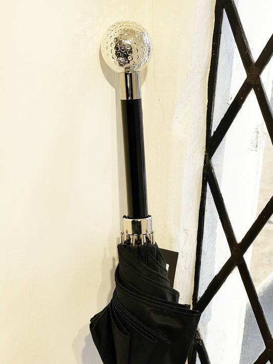 PLAIN BLACK UMBRELLA WITH CHROME EFFECT GOLF BALL HANDLE