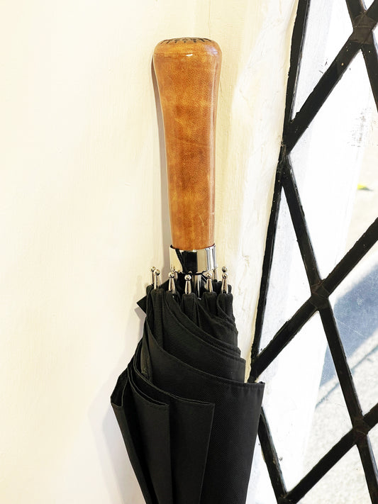 PLAIN BLACK UMBRELLA WITH WOOD HANDLE