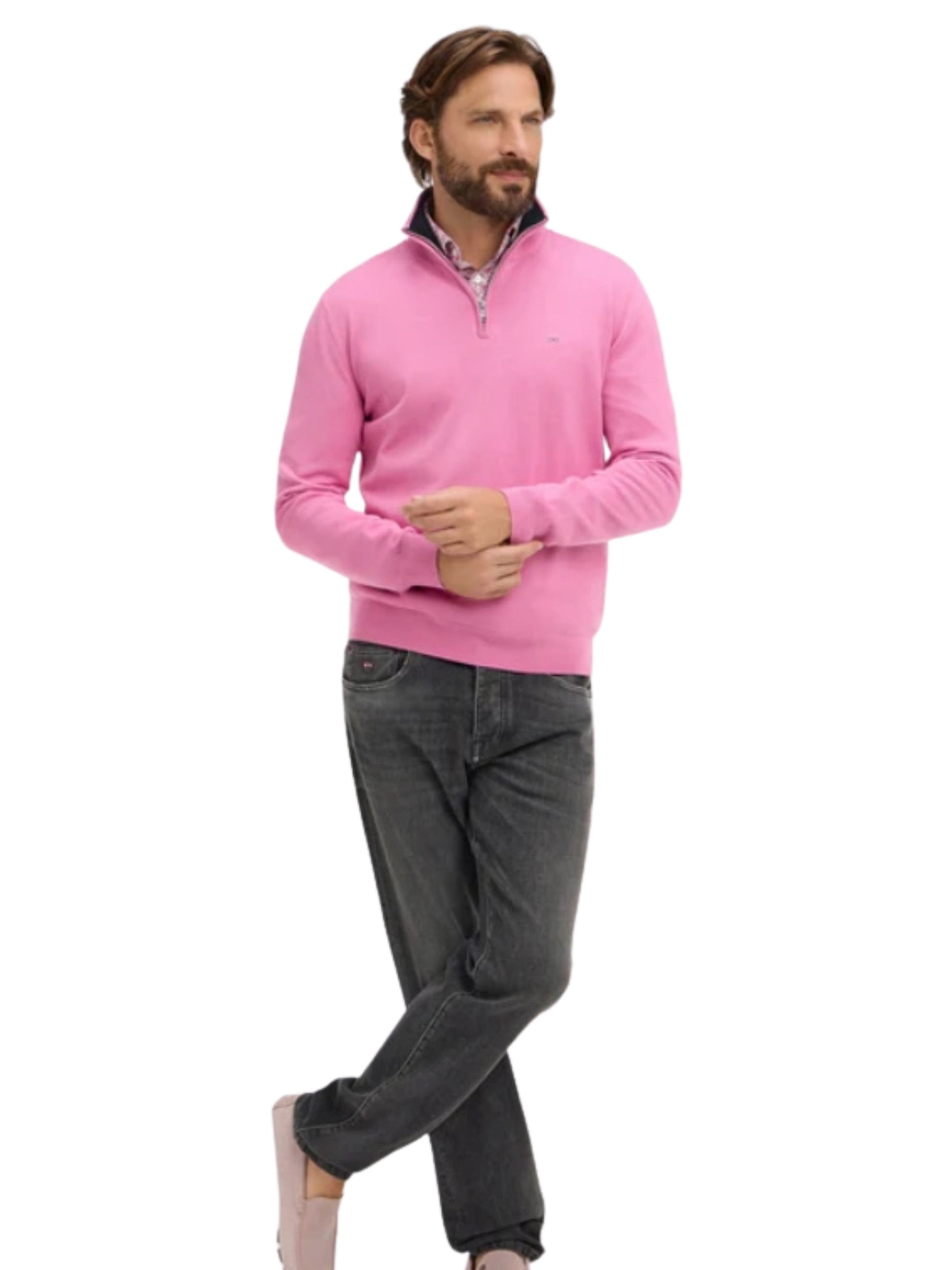PINK COTTON TRUCKER COLLAR LONG SLEEVE JUMPER